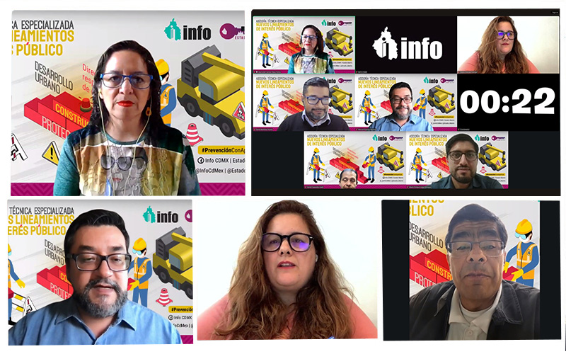 En el marco del Día Internacional para la Reducción del Riesgo de Desastres, el Instituto de Transparencia, Acceso a la Información Pública, Protección de Datos Personales y Rendición de Cuentas de la Ciudad de México (INFO CDMX), a través del equipo de Estado Abierto, llevó a cabo la Asesoría Técnica Especializada sobre los Nuevos Lineamientos de Interés Público en materia de construcciones, desarrollo urbano y protección civil.
