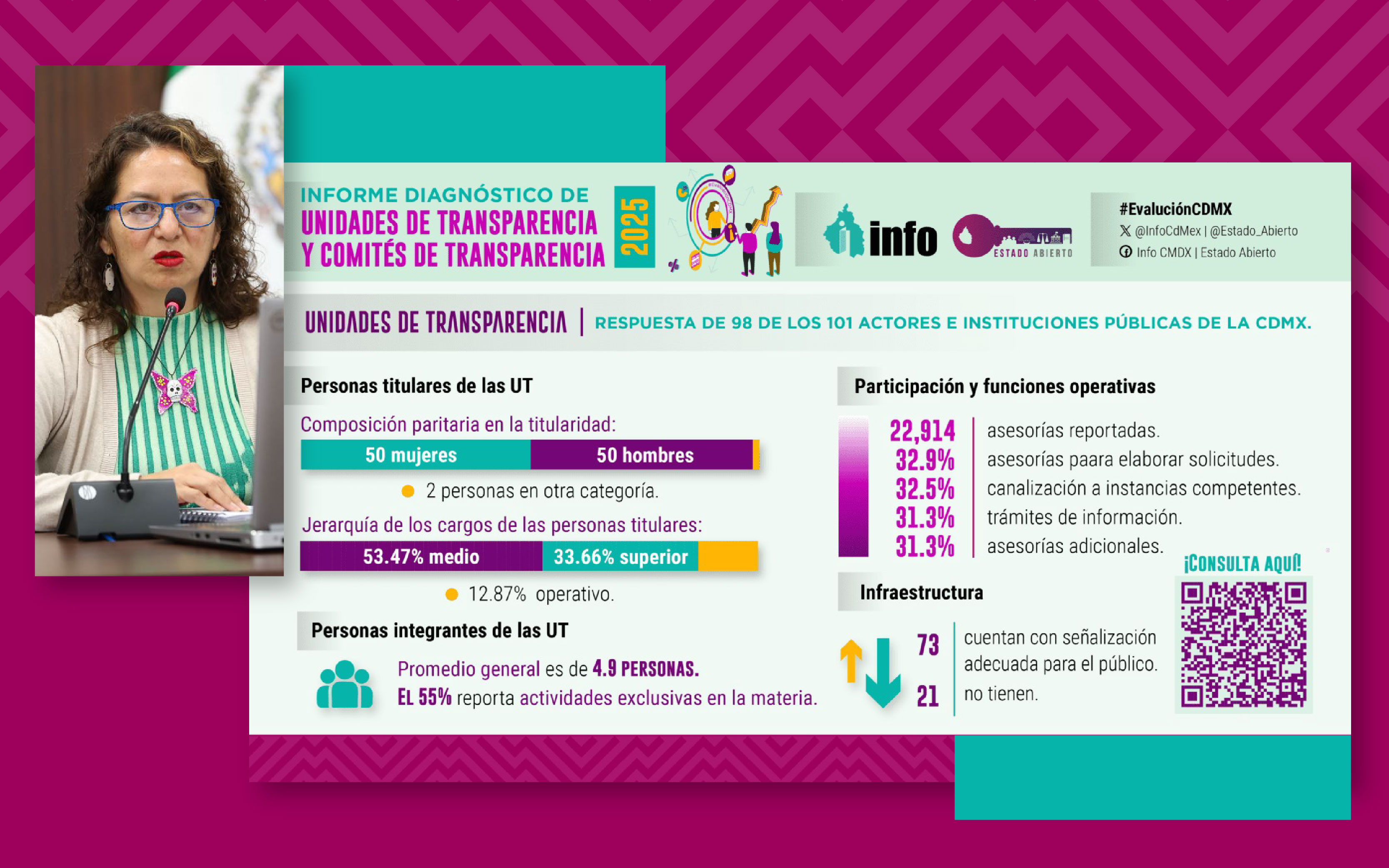 La Comisionada Ciudadana del INFO CDMX, María del Carmen Nava Polina, presentó el Informe Diagnóstico de Unidades de Transparencia y de Comités de Transparencia 2025, un análisis que revela el estado actual de la integración, operación y cumplimiento normativo de estos dos pilares institucionales encargados de garantizar el derecho de acceso a la información pública y la protección de datos personales en la capital.